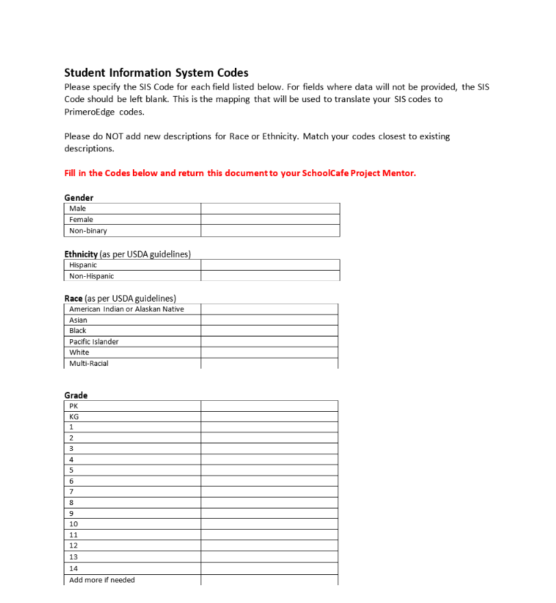 SC Student Information System Codes Print